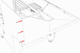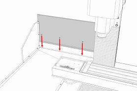 Attach the backsplash to the rear of the left-hand chip pan with a 4 mm hex wrench and three M6 × 1.0 - 12 screws.