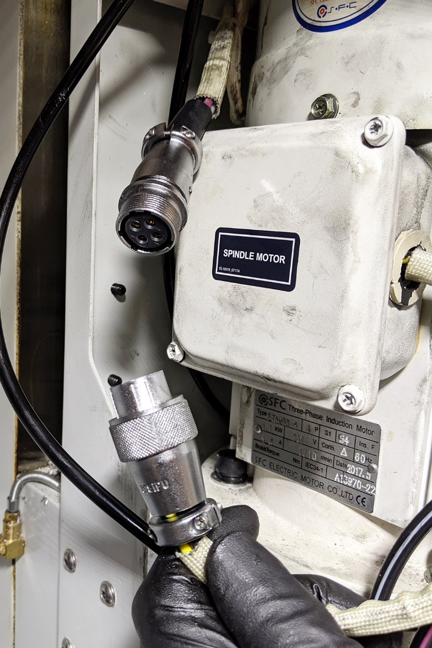 Figure 1: Spindle motor quick-connect fitting disconnected.