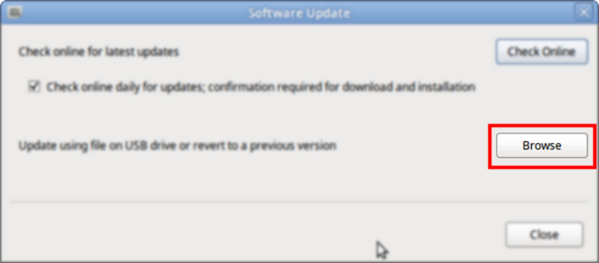 Downloading and installing an update file requires an Internet connection. From the Status tab, confirm that the Internet button LED light is on. Then, select Update.