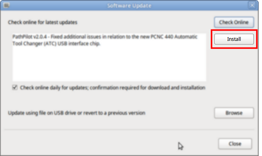 The update file is installed on the PathPilot controller.Follow the on-screen instructions to restart the PathPilot controller.