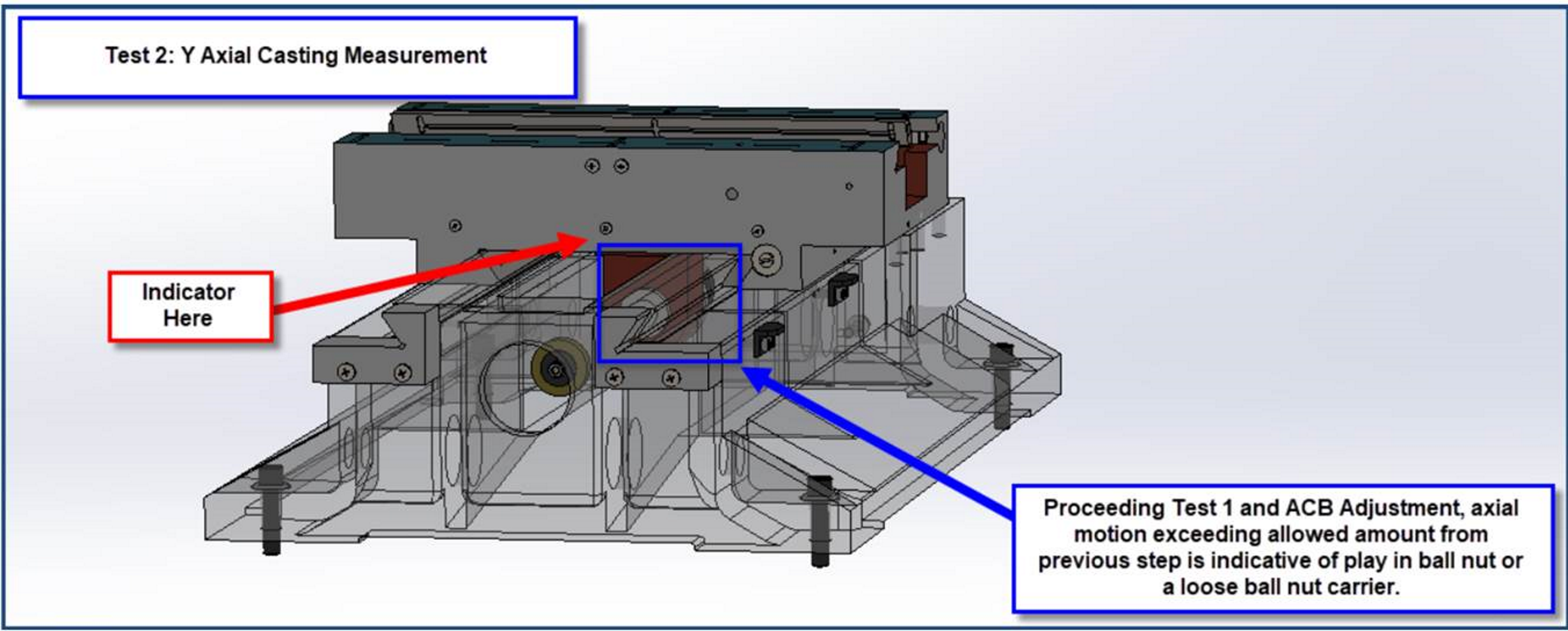 No Motion or Motion Exceeding .0003” – ACB Adjustment Needed (See Angular Contact Bearing Adjustment Procedure then proceed to Test 2.)