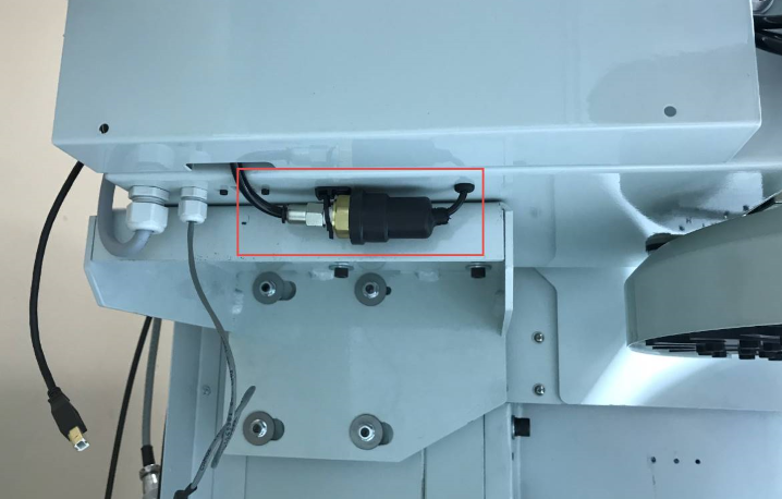 The pressure switch is a normally closed (low air pressure) switch that connects via a 3.5 mm jack into the back of the mounting plate on Legacy ATC’s. On the M style tool changers, they are located on the underside of the ATC electrical box, and are connected with two wire leads directly to the ATC board. When the switch has above 90 PSI it opens. The ATC control board looks for this open signal to indicate there is adequate air pressure.