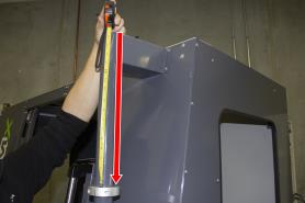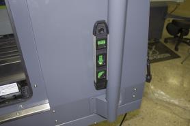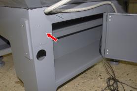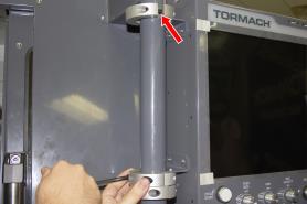 Once the mount arm is secured to the enclosure, open the enclosure door and verify that the mount arm's screws don't interfere with the enclosure door jamb. If they do, loosen the screws on the door jamb, and slide it toward the back of the machine.