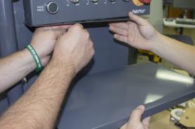 Remove the four screws that secure the operator box to the machine stand using a 3 mm hex wrench.