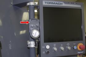 Twist out the machine's red Emergency Stop button, which enables movement to the machine axes and the spindle.