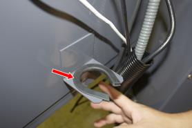 Push the corrugated tubing into the bracket on the rear of the keyboard tray.