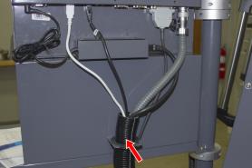 Route the loose end of all cords through the machine stand and out toward the rear of the machine.