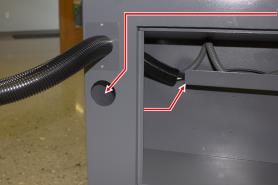Find the existing operator box cable that's preinstalled on the machine. Then, route it through the access hole in the machine stand shown in the following image.