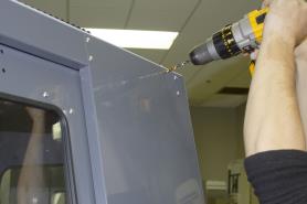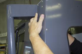 Put the right side window (that you set aside in "Prepare the Machine" (page 4)) back into the right side panel on the enclosure. Then, tighten the screws on the vertical window retainers