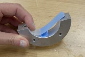 Find the four provided pieces of plastic with adhesive backing. Cut each piece of plastic so that it's the length of the inside of the split collar.