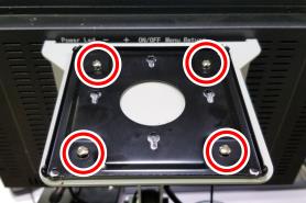 Remove the four screws on the existing monitor mounting plate with a Phillips screwdriver. Set aside the screws, and discard the existing monitor mounting plate.