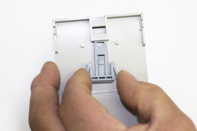 Figure 5: Snapping the DIN rail latch into the bottom of the base.