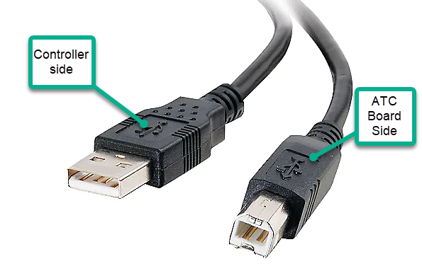 All machines with an ATC communicate through a USB to USB-B cable. Identify this cable on your machine.