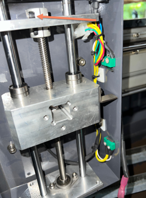 Remove the cover plate over the coupling and make witness marks across the coupling and lead screw.