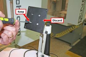 Remove the four screws on the existing monitor mounting plate with a Phillips screwdriver. Set aside the screws, and discard the existing monitor mounting plate.