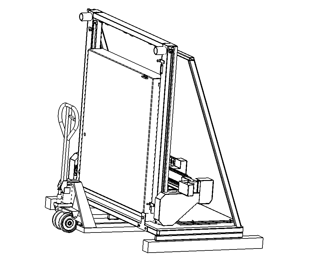Position a pallet jack under the machine and lift high enough to place a 4x4 under the side supports.