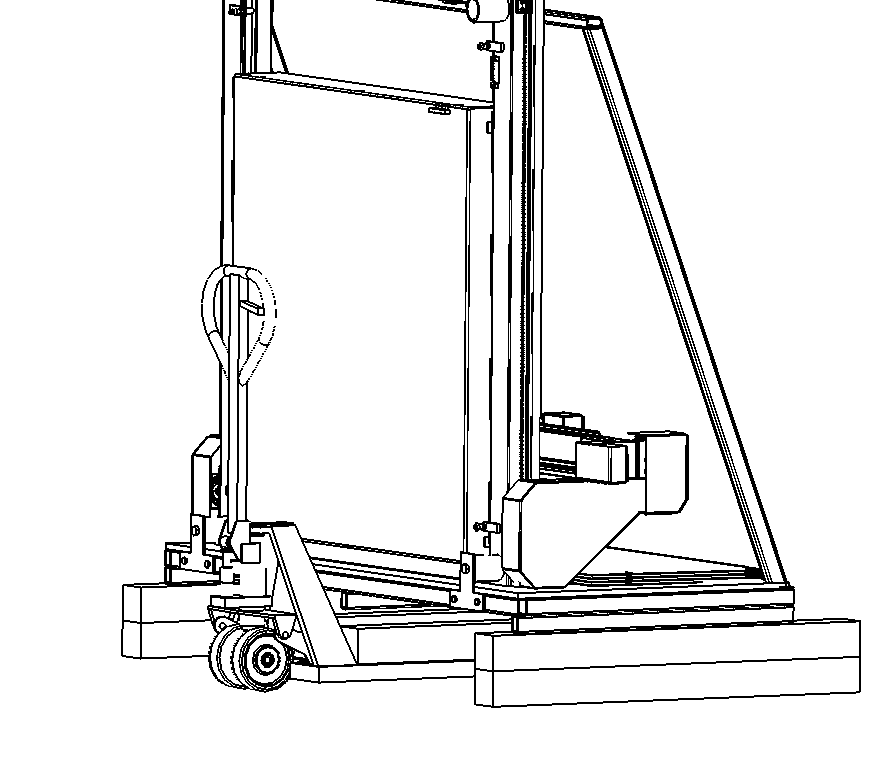 Place two 4x4 pieces on the pallet jack legs and repeat the lift. Place another 4x4 under the side supports.