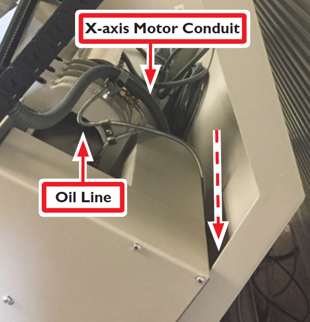 Following the X-axis motor conduit toward the lathe bed (see Figure 4)