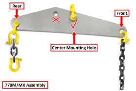 770M/MX Put two connected 3/8-in. forged lifting clevises, one three-link chain, and one 3/8-inch forged lifting clevis into the rear mounting hole.
