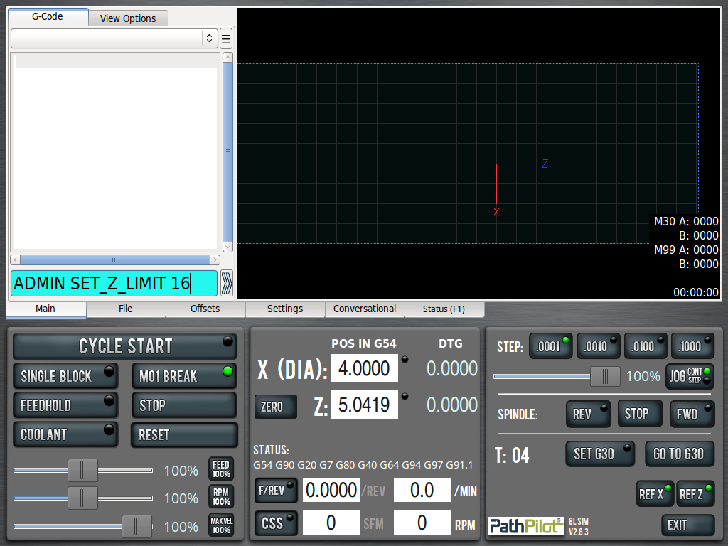 From the PathPilot interface, in the MDI Line DRO field on the Main tab, type ADMIN_SET_Z_LIMIT [NUMBER] or ADMIN_SET_X_LIMIT [NUMBER].